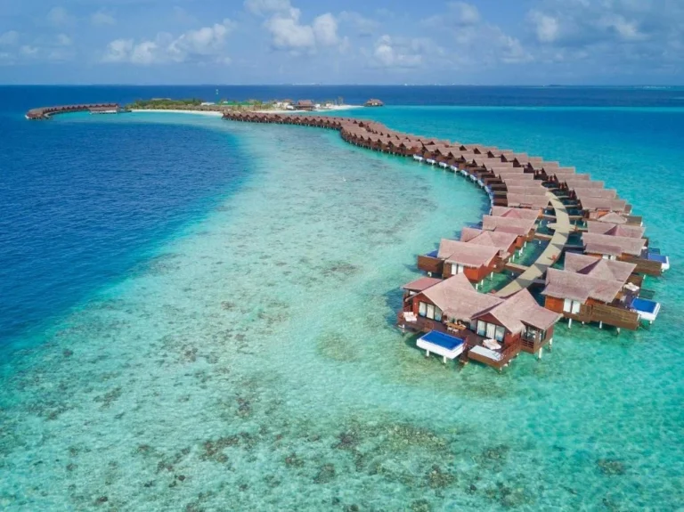 A luxurious one-island-one-resort destination featuring a collection of stunning overwater villas. The resort is known for its proximity to the airport, beautiful house reef, and award-winning spa.