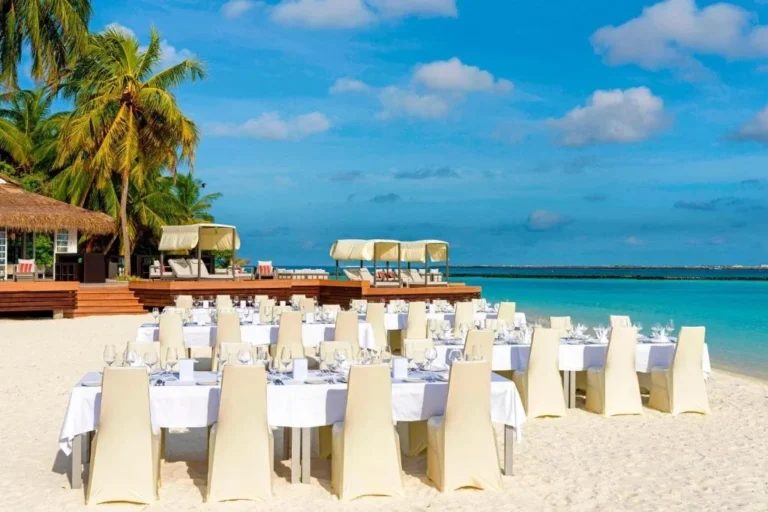 Nestled on its own private island, this family-friendly resort offers a diverse range of rooms, overwater bungalows, and villas. It's one of the closest resorts to the airport and boasts lush tropical gardens.